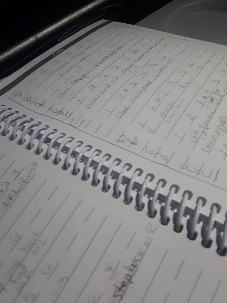 I finished writing out my Open Waltz routine in my Choreography Journal. If you notice in the photo, I made use of the left column by marking which wall I was on through the routine. Originally, I designed this column for those who prefer to number down the left side, so they can include more detail about the movement. But as you can see, even if you do your counts across the page like me, you can still use this feature. Just like in ballroom dance, it’s all about being structured yet flexible.