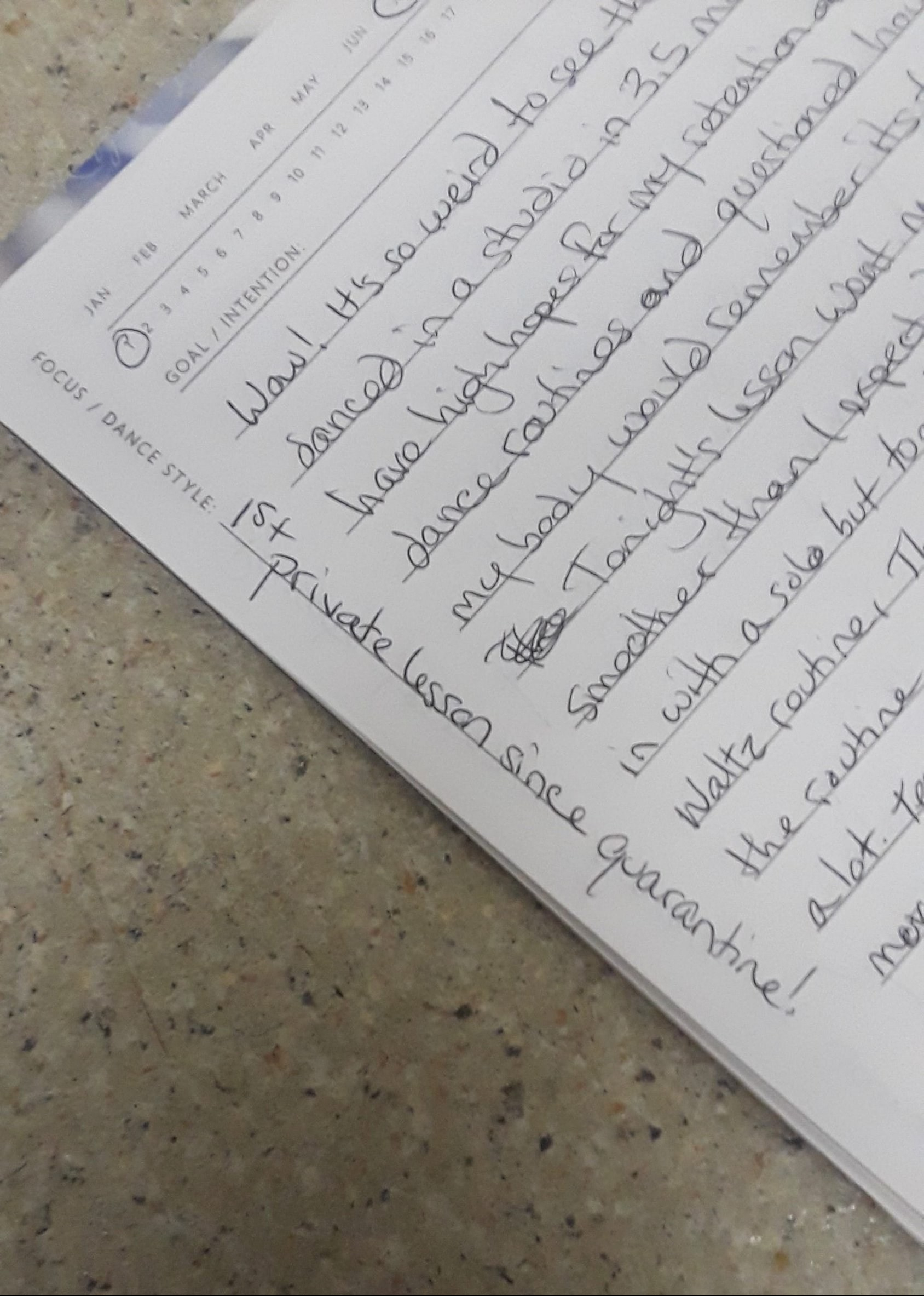 Another thing I hadn’t done in 3.5 months was write in my Journal for the Whole Dance Journey. It had been gathering dust in my dance bag too. It felt good to break it out again, the final piece to making the return official.
