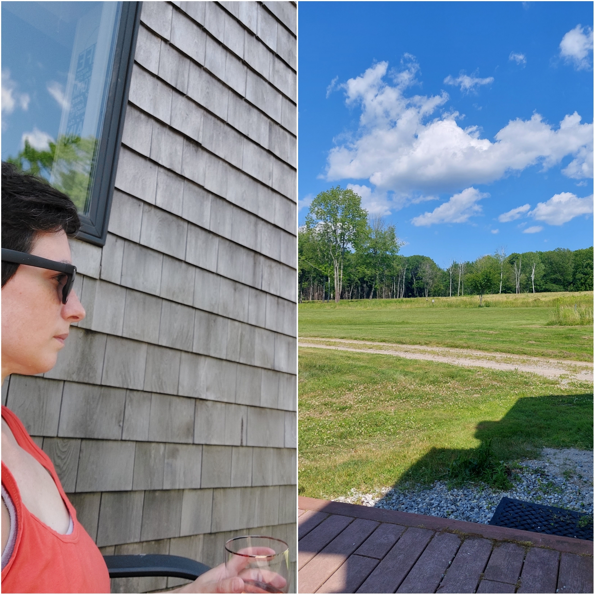 This weekend was our first hot days of summer with high humidity and temperatures in the 80s. As sticky as it was, after I got home from Zumba, showered and ate lunch, I felt drawn to be outside. I needed to be with the birds and the wind in the trees for awhile, to feel a sense of peace. So I sat in a shady spot on the deck with a glass (or three) of Rosé for a couple hours. I wouldn’t say I felt better afterward, but I felt less in turmoil with my feelings.